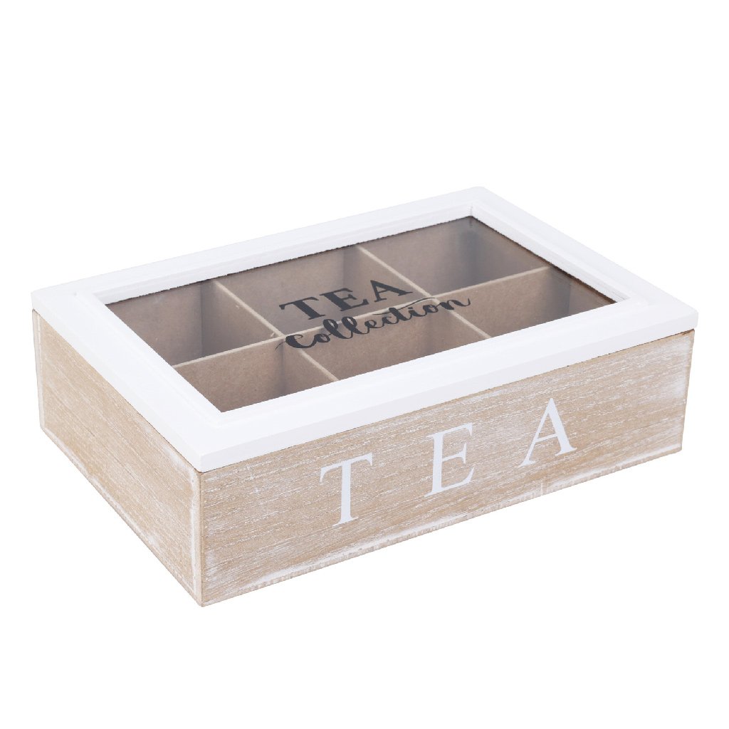 Teásdoboz hat rekesszel, természetes, fehér fedéllel Koop