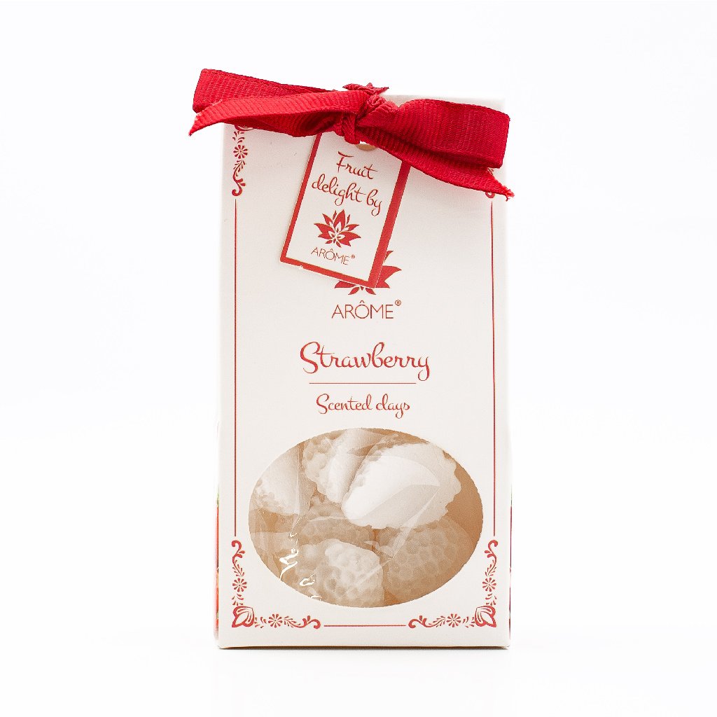 - Illatos agyagok – Eper (6 db) – eredeti, eper alakú illatos dekorációk, amelyek fokozatosan édes illatot bocsátanak ki a térbe. Ideális gardróbba, hálószobába vagy nappaliba. Gyönyörűen becsomagolva, kis ajándékként is megfelelő.