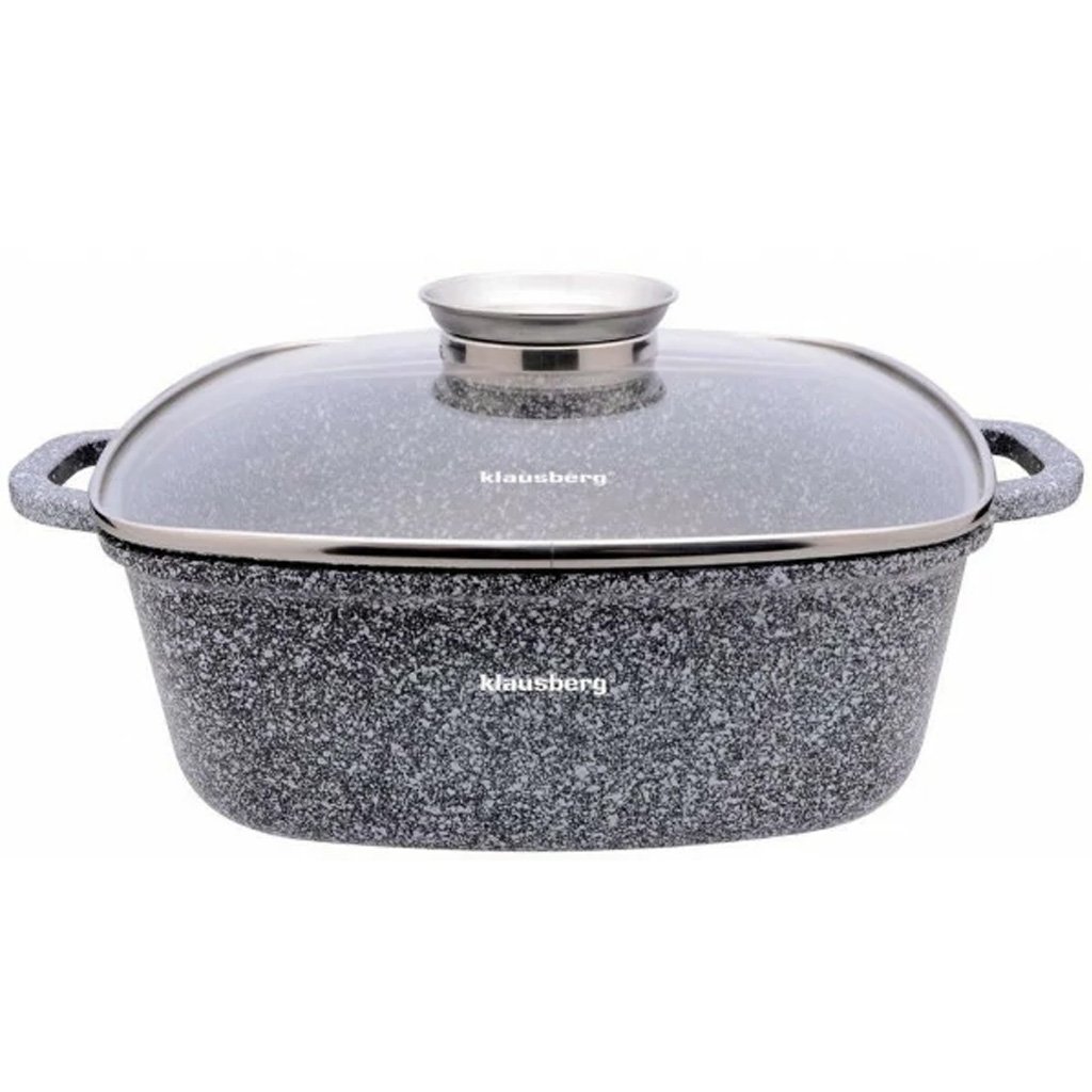 A Klausberg serpenyő ideális választás a mindennapi főzéshez és sütéshez. Négyszögletes formájának és 5,5 literes űrtartalmának köszönhetően elegendő helyet kínál különféle ételek elkészítéséhez. A tapadásmentes márvány bevonat lehetővé teszi a minimális zsiradékkal való főzést és a könnyű tisztítást. A serpenyő alkalmas minden típusú főzőlaphoz, beleértve az indukciósat is, valamint sütőbe is tehető 200 °C körüli hőmérsékleten.