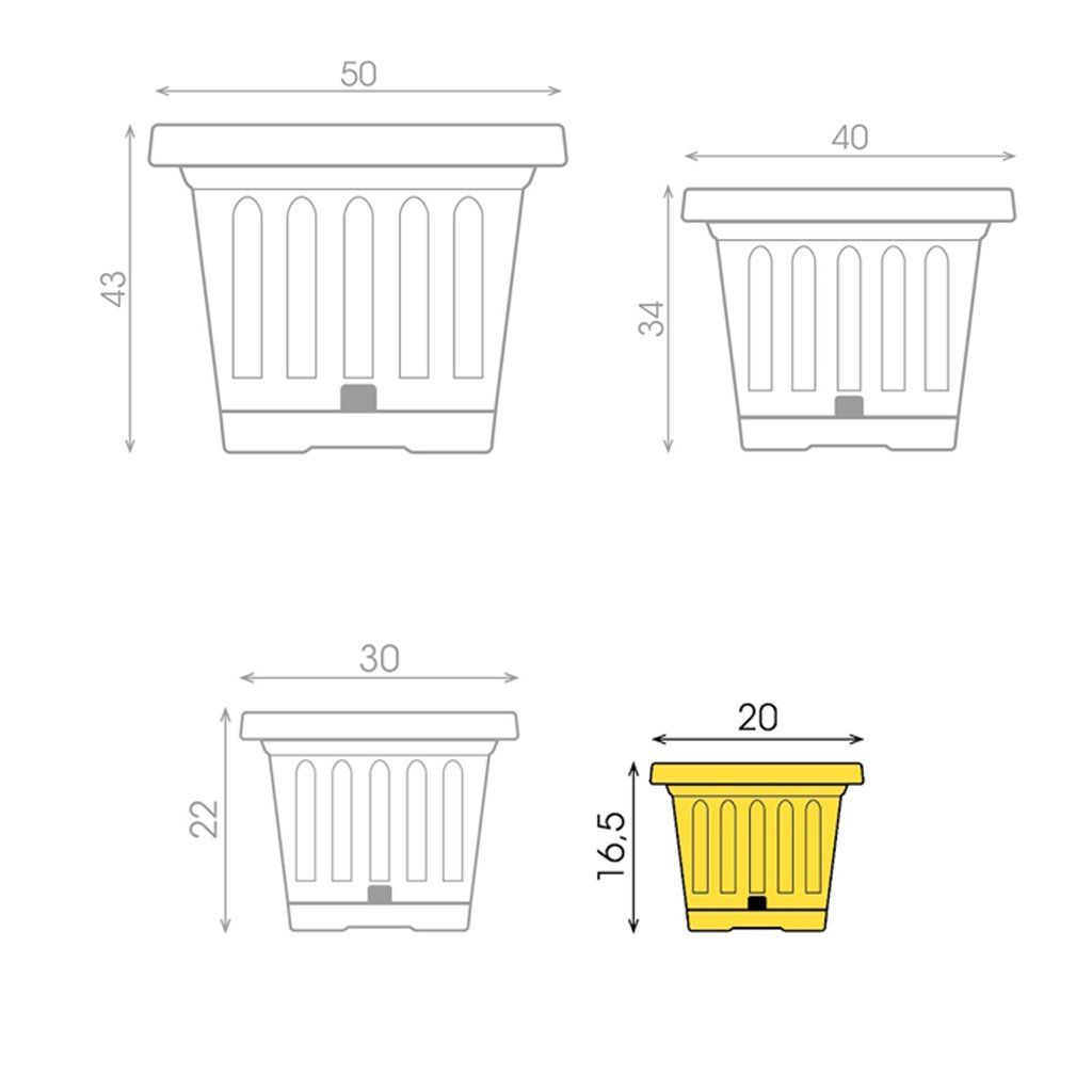 Modern, négyszögletes, nagyméretű TERRA virágcserép alátéttel és víztárolóval, elegáns olasz designban.Bel- és kültéri használatra is alkalmas, és sokoldalúan felhasználható mindenféle növényhez. Akár egynyári növényekkel, évelőkkel vagy gyógynövényekkel is beültetheti.