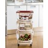 A gurulós polc 3 kosárból és 1 tálcából áll, a kosarak zárakkal vannak egymáshoz rögzítve. A három rekesz áttekinthető és könnyen hozzáférhető tárolóhelyként szolgálhat. Vagy előkészítheti bennük az összes szükséges dolgot, a főzéshez szükséges alapanyagokat, gyümölcsöket, apró frissítőket, és a polcot könnyen áthelyezheti oda, ahová éppen szüksége van. Műanyag forgókerekekkel van felszerelve a könnyű kezelhetőség érdekében.