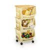 A gurulós polc 3 kosárból és 1 tálcából áll, a kosarak zárakkal vannak egymáshoz rögzítve. A három rekesz áttekinthető és könnyen hozzáférhető tárolóhelyként szolgálhat. Vagy előkészítheti bennük az összes szükséges dolgot, a főzéshez szükséges alapanyagokat, gyümölcsöket, apró frissítőket, és a polcot könnyen áthelyezheti oda, ahová éppen szüksége van. Műanyag forgókerekekkel van felszerelve a könnyű kezelhetőség érdekében.
