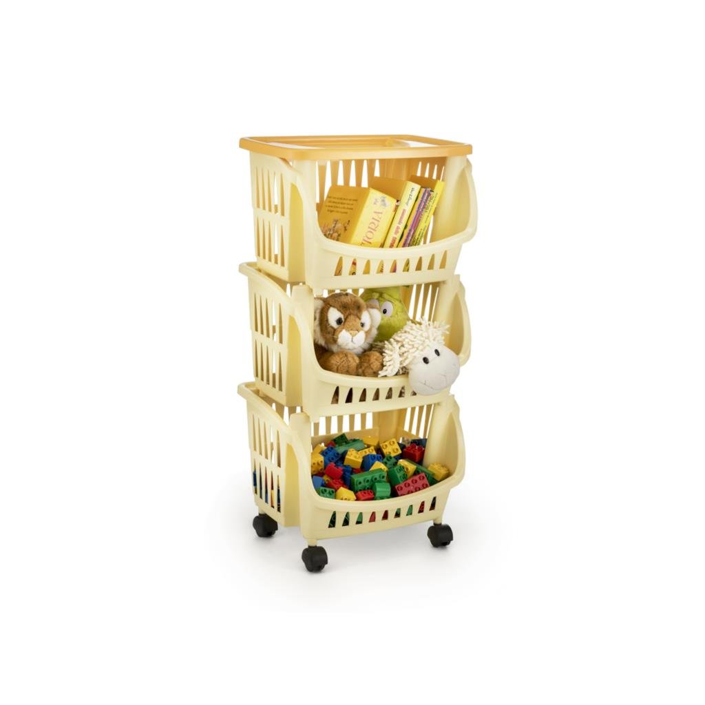 A gurulós polc 3 kosárból és 1 tálcából áll, a kosarak zárakkal vannak egymáshoz rögzítve. A három rekesz áttekinthető és könnyen hozzáférhető tárolóhelyként szolgálhat. Vagy előkészítheti bennük az összes szükséges dolgot, a főzéshez szükséges alapanyagokat, gyümölcsöket, apró frissítőket, és a polcot könnyen áthelyezheti oda, ahová éppen szüksége van. Műanyag forgókerekekkel van felszerelve a könnyű kezelhetőség érdekében.