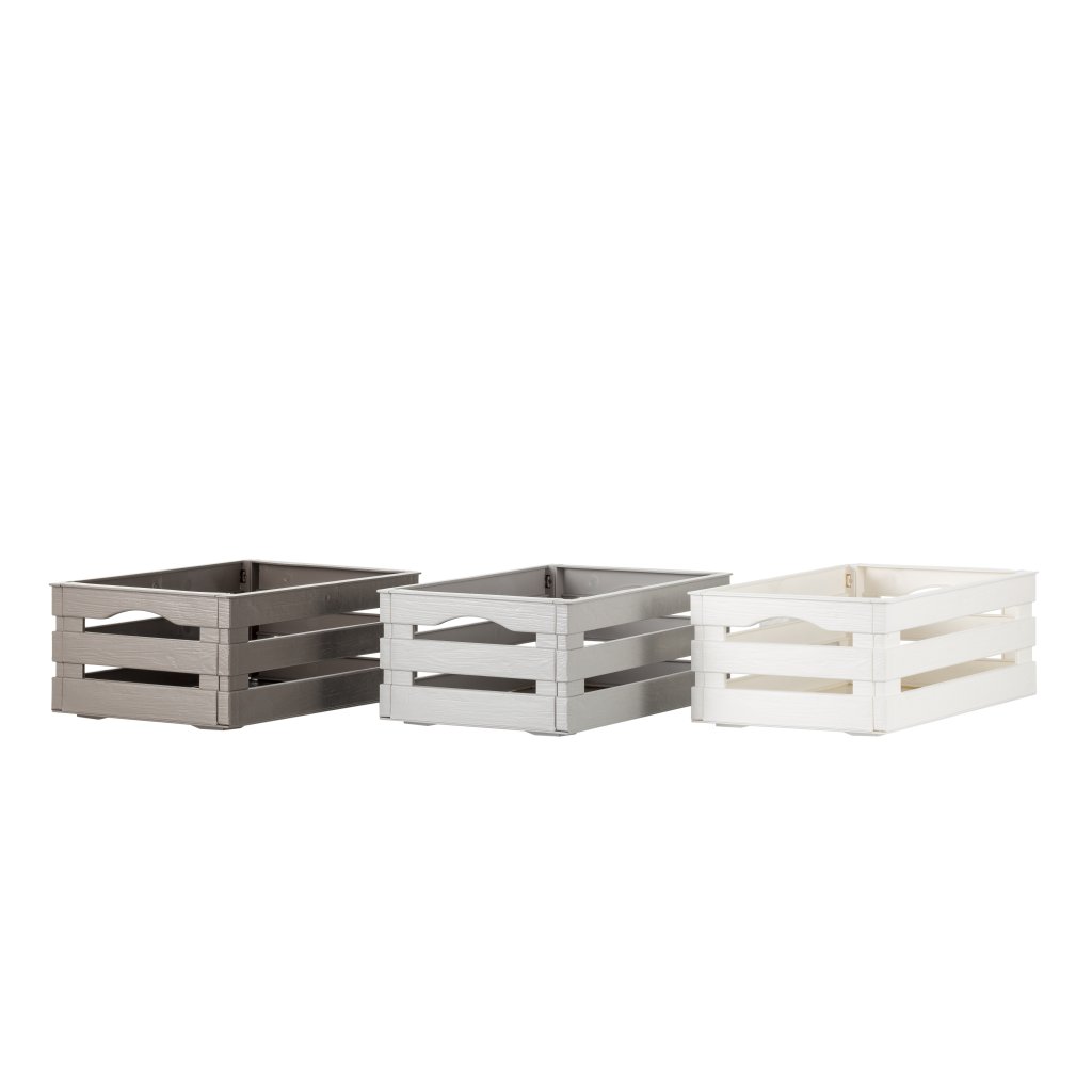 A fa dekorációval ellátott, többcélú műanyag láda az olasz BAMA gyártótól ideális vidéki és modern szobákba, beltéri és kültéri helyiségekbe. A TINA műanyag láda sokféle felhasználási lehetőséggel rendelkezik, segít rendet tartani a konyhában, a fürdőszobában, a kertben vagy a garázsban.