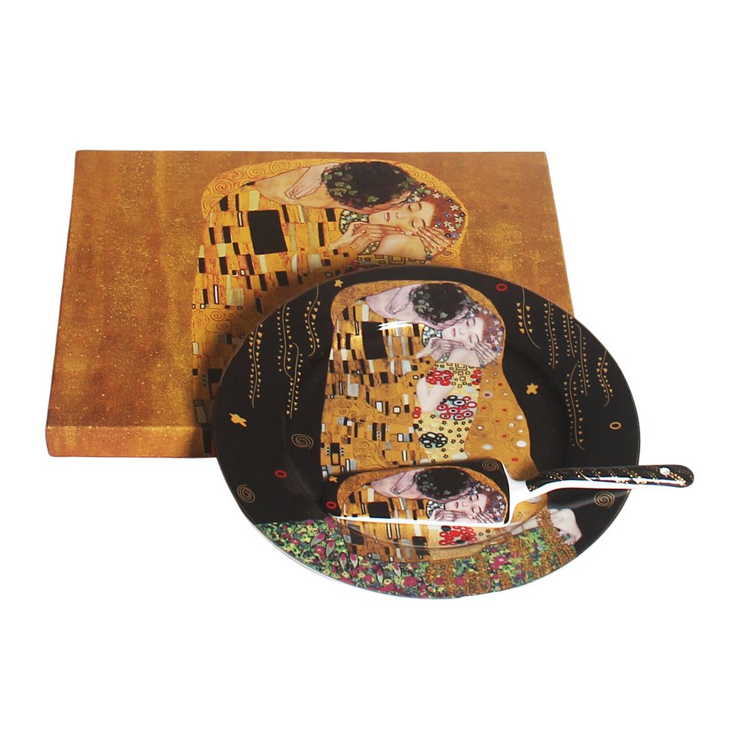 Egy születésnapi ünnepség, esküvő vagy akár házassági évforduló sem múlhat el egy gyönyörű torta nélkül. Ezekre a különleges alkalmakra nem hiányozhat egy tortatál lapáttal. A stílusos, luxus kivitelű, Gustav Klimt híres Csók című festményével díszített tortatálon a torta remekül mutat az asztal közepén.