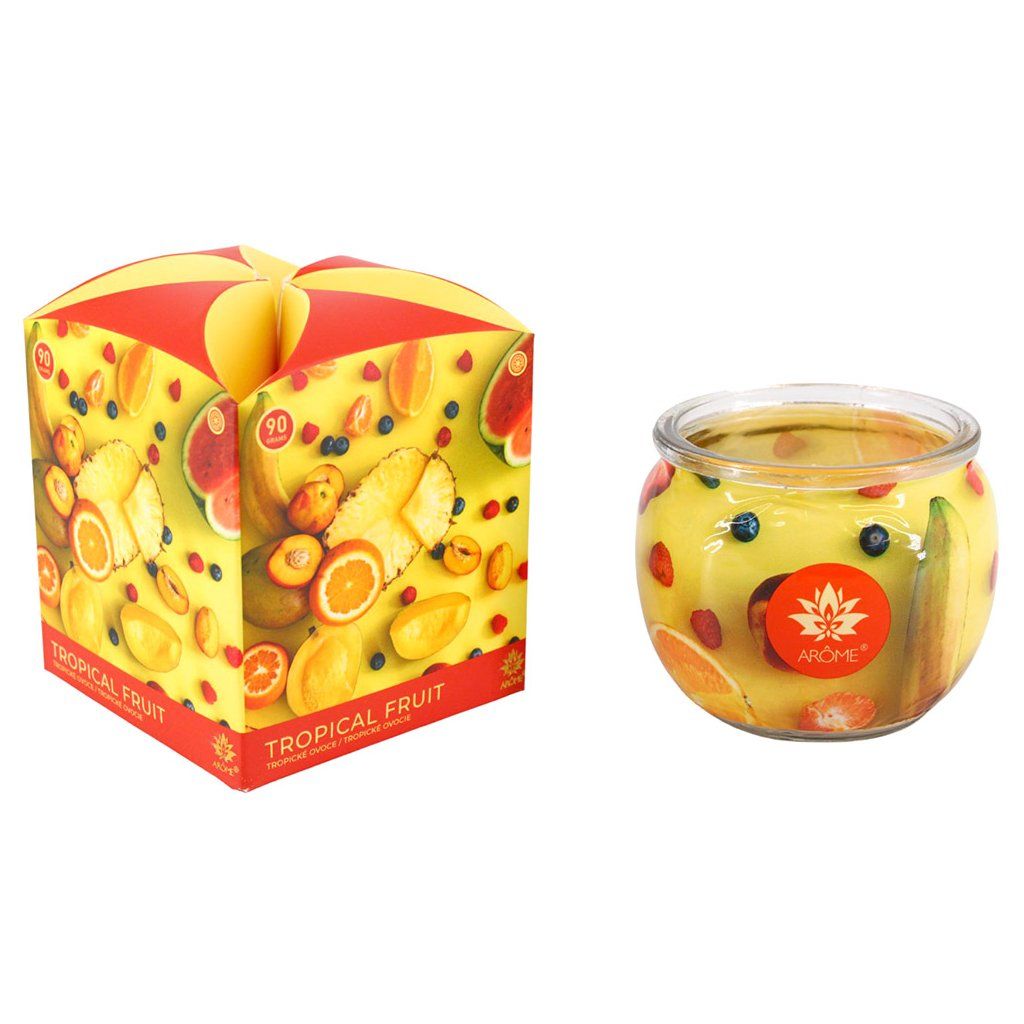 Dekoratív illatos gyertya akár 22 órán át trópusi gyümölcsök illatával tölti meg otthonát. A gyertya lángja beragyogja az otthont, és a kényelem és meghittség pillanatait teremti meg. Az illatos gyertya egyben szép dekoráció is a belső térben.
