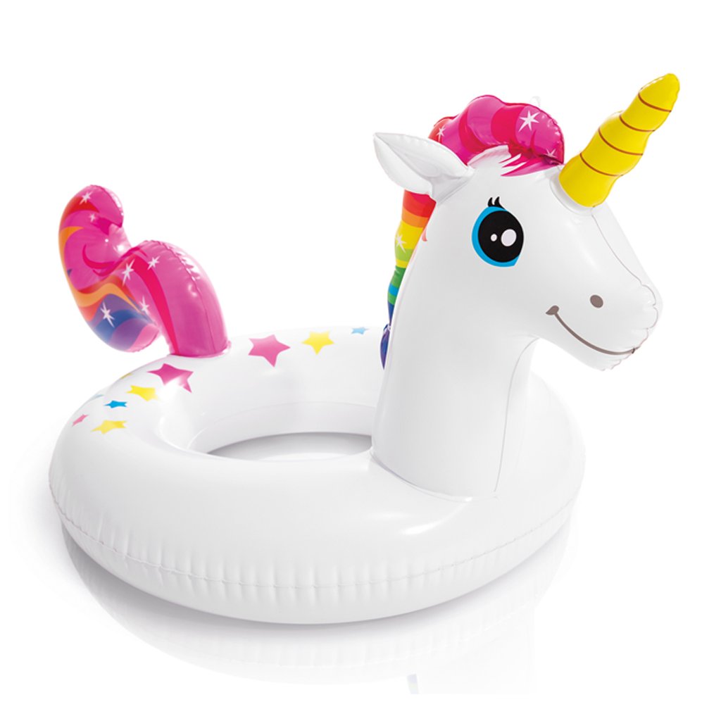 A népszerű unikornis fejével ellátott felfújható úszógumi örömet szerez a gyerekeknek. Rengeteg szórakozást nyújt a medencében vagy a strandon.
