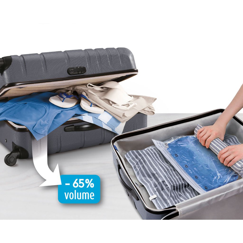A vákuumtasakok ideális megoldást jelentenek a ruhái térfogatának jelentős csökkentésére utazás közben. Ideálisak ruhákhoz, fehérneműkhöz, cipőkhöz és kiegészítőkhöz.