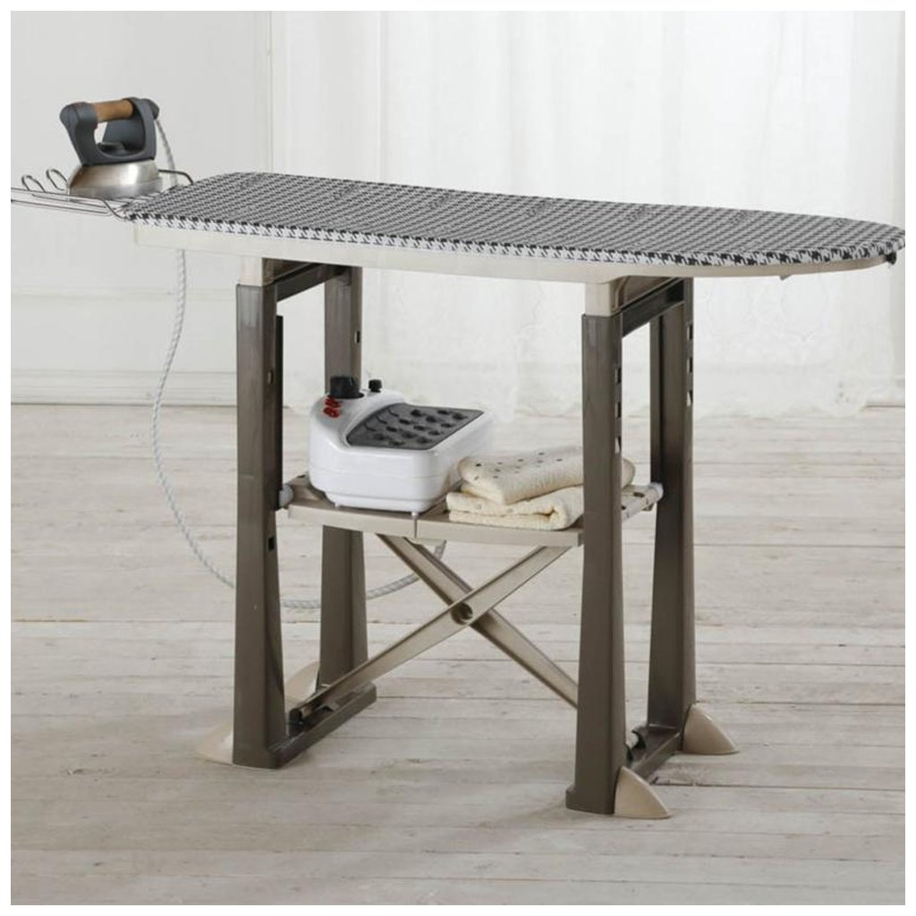 Az új generációs vasalódeszka tökéletes vasalást tesz lehetővé, mert különböző magasságokba állítható, és a praktikus polcnak köszönhetően, amelyre a vasaló helyezhető, rengeteg helyet biztosít a könnyű vasaláshoz! Lélegző deszkával és vasalótartóval van felszerelve. Összecsukható a helytakarékosság érdekében. Összecsukva önállóan áll.