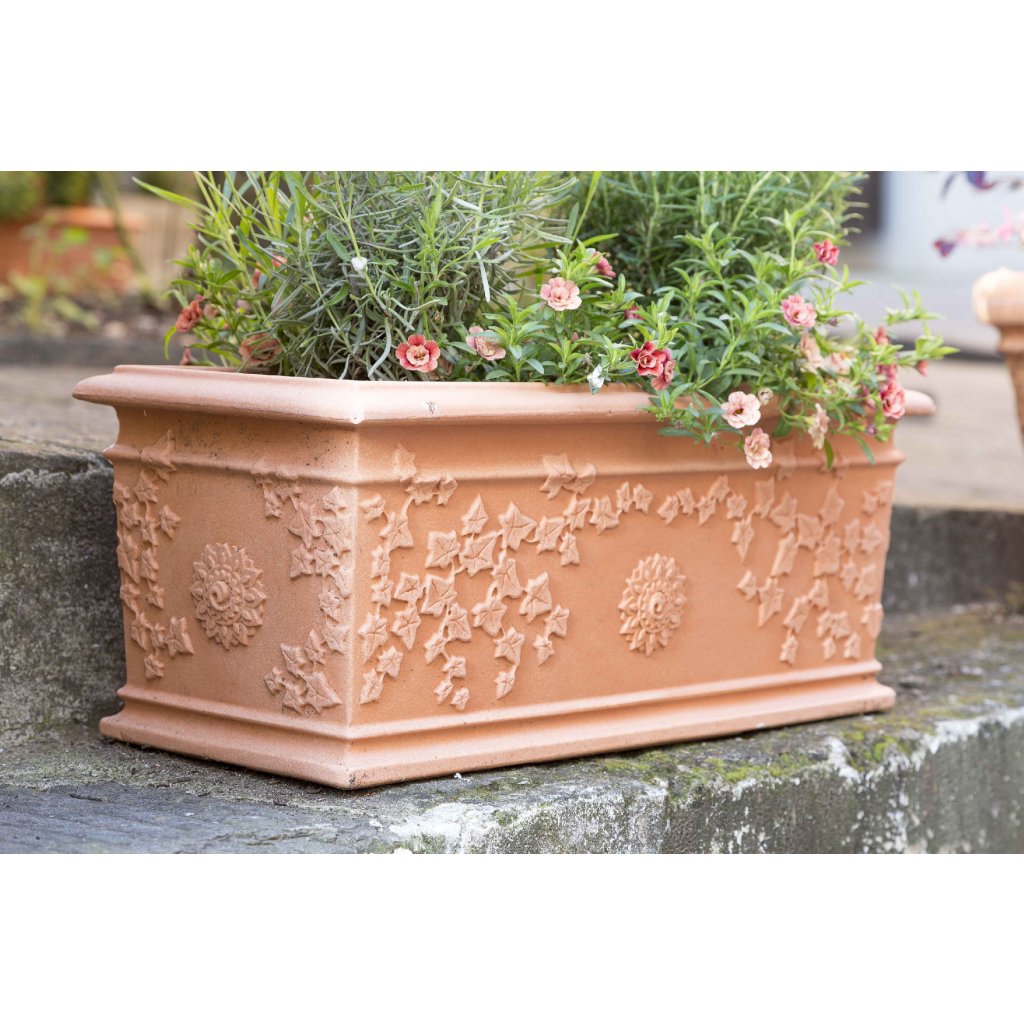 Az elegáns, romantikus virágmintával díszített VITE virágláda megkülönböztethetetlen a kerámia virágládáktól. Minőségi, fagyálló műanyagból készült speciális rotációs öntési technológiával. A virágtartó úgy néz ki, mint a kerámia. OEllenáll a -65°C és +86°C közötti hőmérséklet-változásoknak, az ütéseknek és az UV-sugaraknak.