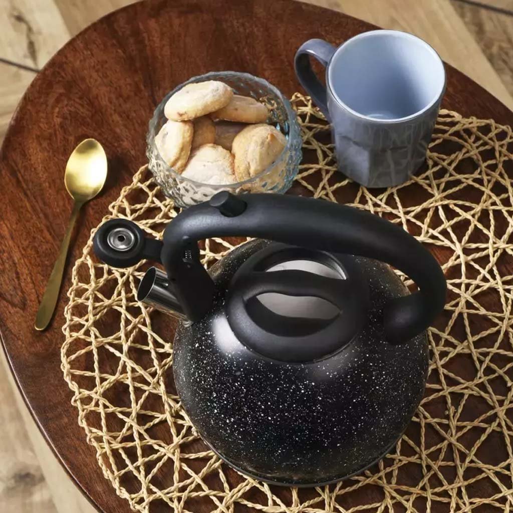 Ez a mindennap használható, sípoló vízforraló tökéletes kiegészítője konyhájának. A Kinghoff vízforralók eleganciájukról és tartósságukról híresek. A speciális technológiának köszönhetően a vízforraló optimális hőelosztással rendelkezik. Ennek köszönhetően a víz gyorsabban és kevesebb energia felhasználásával melegszik fel. Az alja tökéletesen vezetőképes, és hosszú ideig fenntartja a víz hőmérsékletét.