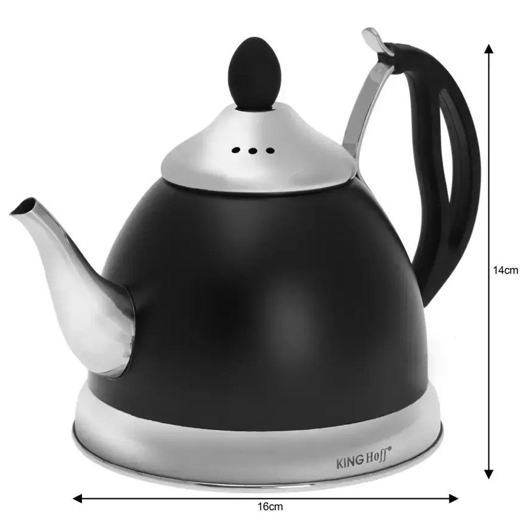 A stílusos és kompakt KINGHOFF teáskanna 1 literes űrtartalommal ideális választás a mindennapi teafőzéshez vagy vízmelegítéshez kisebb háztartásokban vagy irodákban. Elegáns, fekete kivitele fényes rozsdamentes acél részletekkel modern megjelenést kölcsönöz konyhájának.