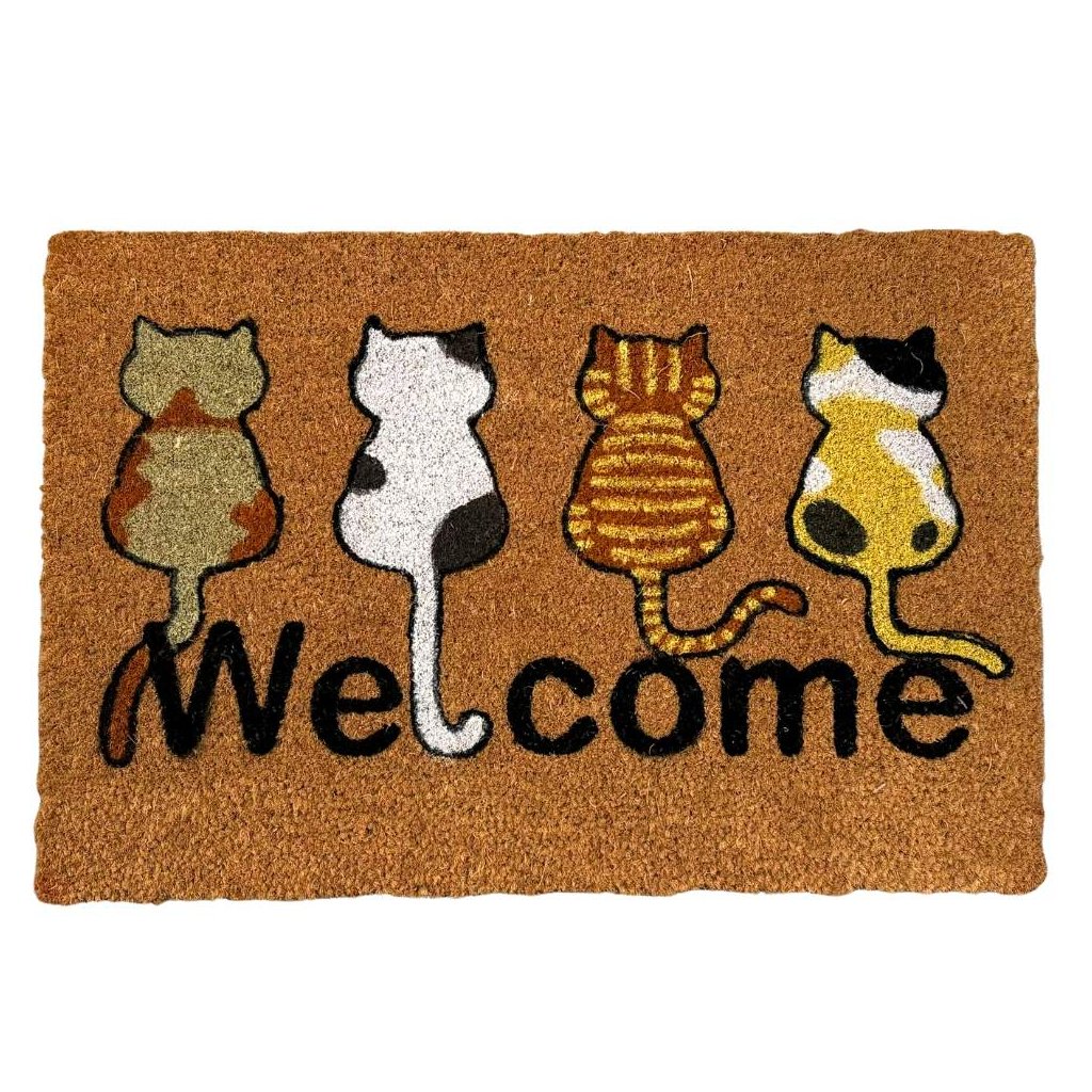 A macskás és szöveges lábtörlő máris három feladatot lát el. Elsősorban kiemeli otthona vagy lakása egyediségét. Másodsorban ízlésesen szépíti a teret a bejárati ajtónál, végül pedig megbízhatóan megtisztítja az összes látogató cipőjét.